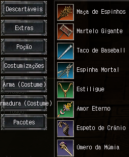 com 100% de chance de upgrade. Entretanto, seu preço não é barato. Recomendável usar apenas em itens raros, aqueles no qual a quebra acarreta em grande prejuízo (elmo com delay, bota de velocidade, etc.)Pedra de super refinamento: se usado em um equipamento, resulta em upgrade com 100% de